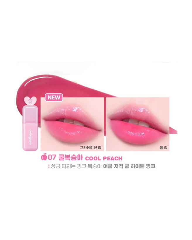تینت لب کالرگرام مدل Juicy Drop شماره 07 Cool Peach دارای بافتی سبک، نیمه شفاف و بسیار لطیف است که جلوهای آبدار، براق و طبیعی به لبها میبخشد، بدون اینکه احساس چسبندگی ایجاد کند.