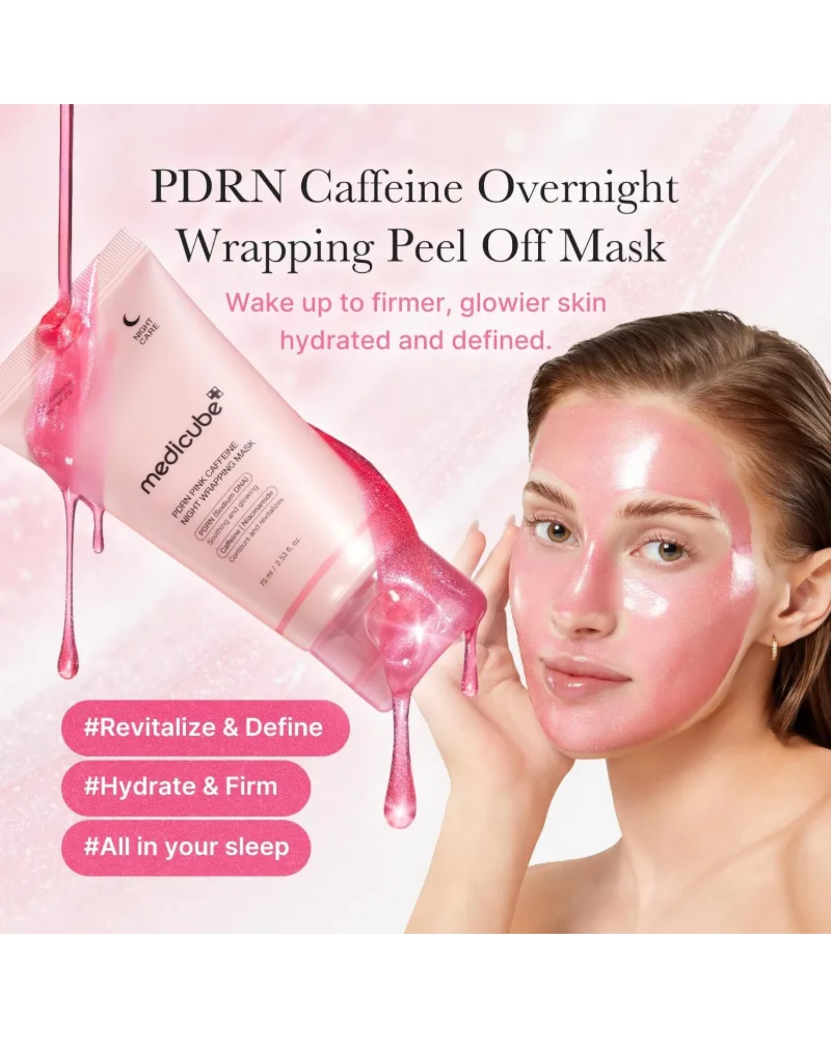 ماسک شب مدیکیوب Medicube PDRN Pink Caffeine Night Wrapping Mask یک گلس ماسک صورتی-مرواریدی پیشرفته است که در طول شب به لایهای نازک و چسبنده روی پوست تبدیل میشود و به بهبود ظاهر و شفافیت پوست کمک میکند. این ماسک شب مدیکیوب با ترکیب قدرتمند PDRN مشتق از سالمون (DNA) و کافئین فرموله شده تا همزمان پوست را آبرسانی، سفت و شاداب کند.